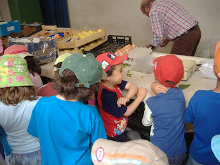 Já na cozinha, lavámos tudo em alguidares com muita água. Migámos a alface, os coentros e a hortelã e cortamos os rabanetes aos bocadinhos. Conseguimos fazer tudo isto como verdadeiros cozinheiros, só tivemos mais dificuldade em cortar os rabanetes.