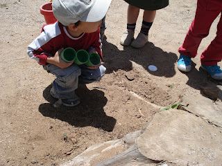 Já no jardim de infância, durante a hora de almoço, fomos até um dos formigueiros que existem no pátio da escola, instalado no tronco cortado, e decidimos procurar mais um pouco.